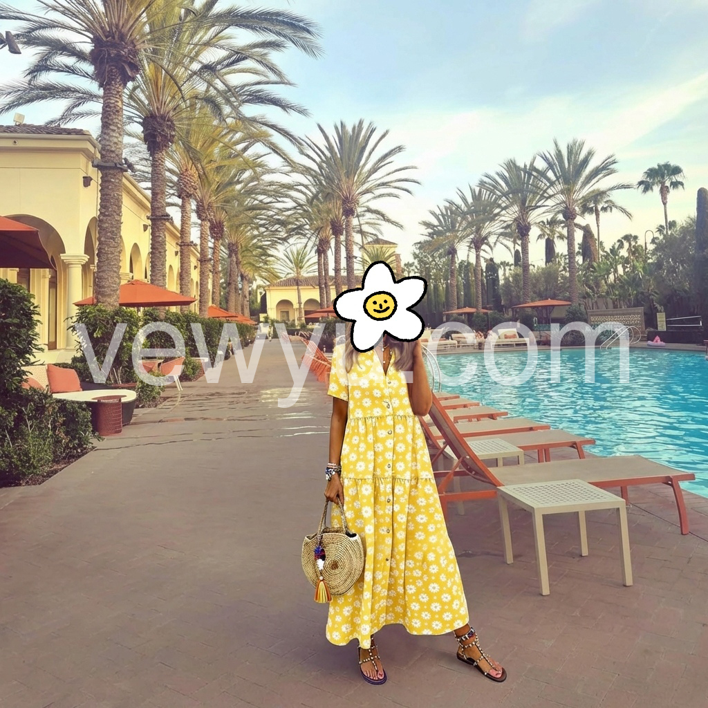 This yellow daisy dress is absolute perfection for summer! The color is incredibly vibrant and cheerful. The material is lightweight and breathable, making it ideal for those hot August afternoons. I highly recommend it!