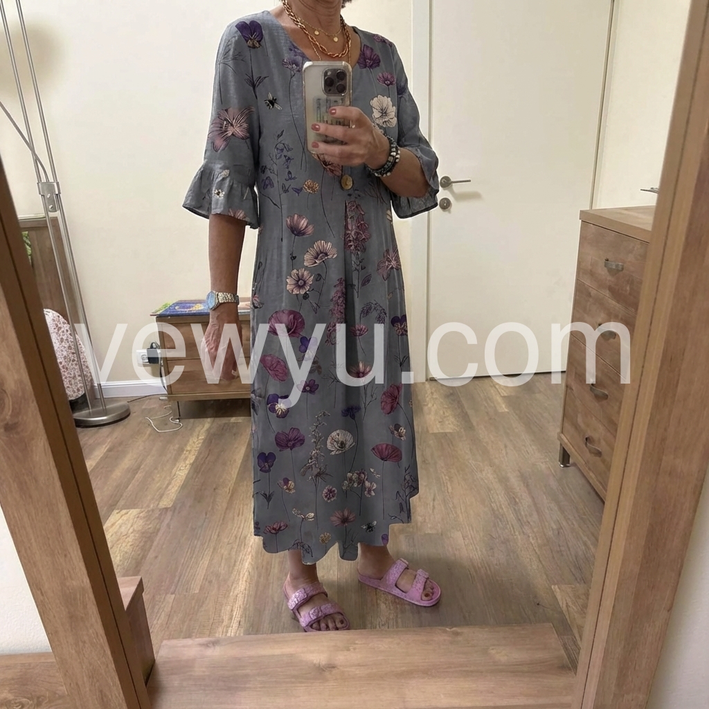This boho floral dress is so cozy and cute! The muted gray and purple print is perfect for fall, and the pockets are a game-changer.
