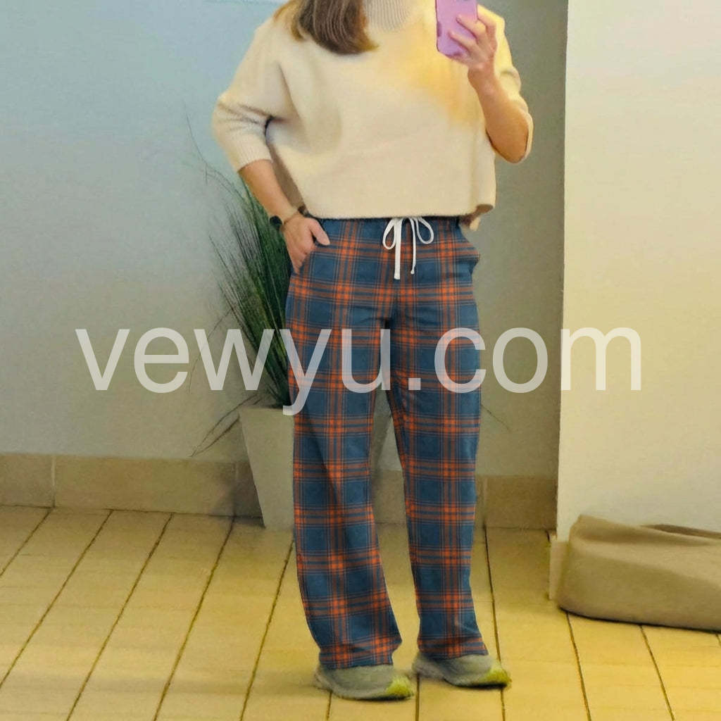 Casual Blue Check Side Pocket Pants