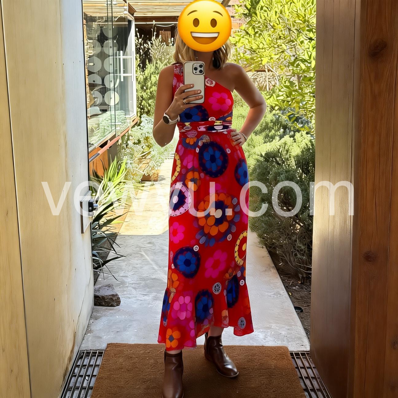 This dress makes me feel so glamorous! The waist hits at just the right spot to give an hourglass shape. Plus, the pockets are surprisingly deep. The red and pink combo is gorgeous. Wash on cold and hang dry, it held up great.