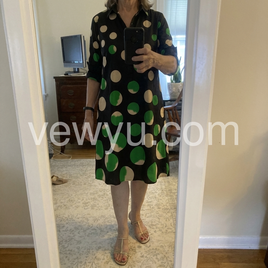 Elevate your casual style with this chic polka dot midi dress. The classic shirt collar, 3/4 sleeves and pockets offer a timeless, polished look.