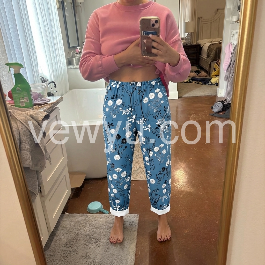 These pants are exactly what I was looking for. Loose fit but still flattering. I love rolling up the cuffs to show the white lining, it adds such a cute contrast to the blue floral design.