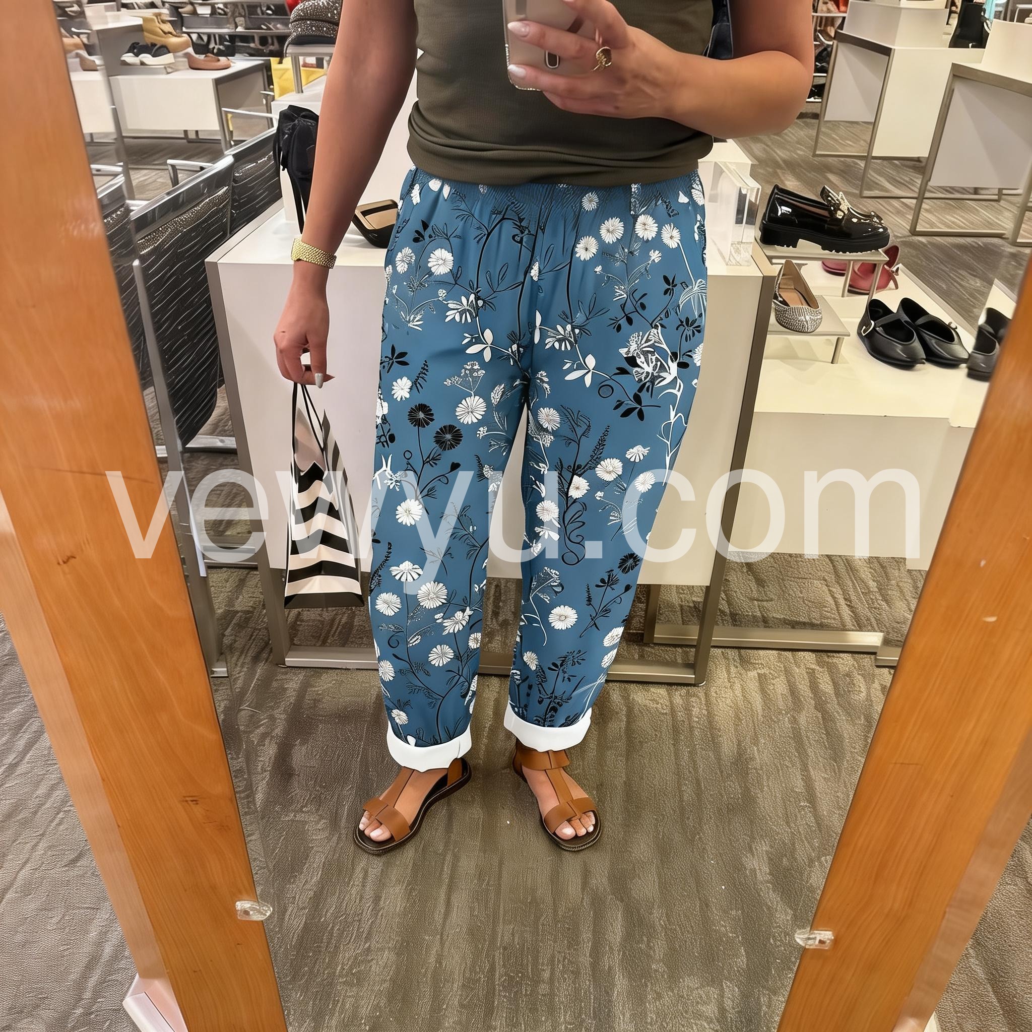 Love the daisy print, it is so cheerful for spring and summer. The elastic waistband is super comfortable and does not pinch at all. Highly recommend for casual wear.
