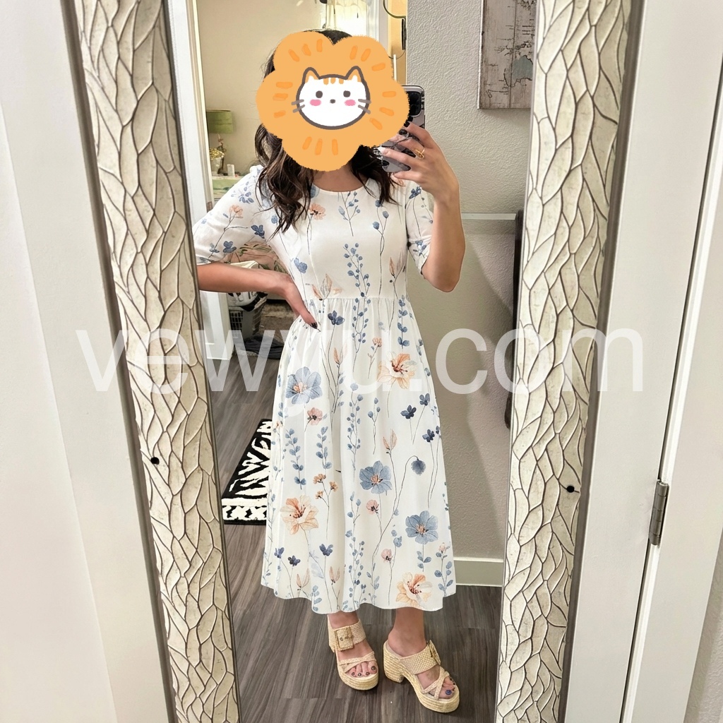 I crafted this dress to bring soft, romantic charm to your wardrobe. The watercolor floral print feels fresh and modern, avoiding overly sweet designs that date quickly.