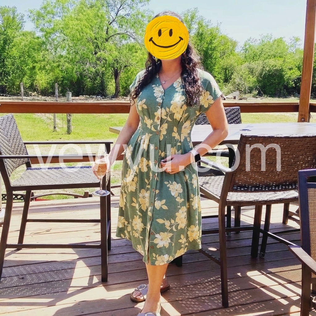 Perfect summer dress. The material is lightweight and breathable, which is exactly what I need for the hot weather. The button-down detail adds a nice touch without gaping.