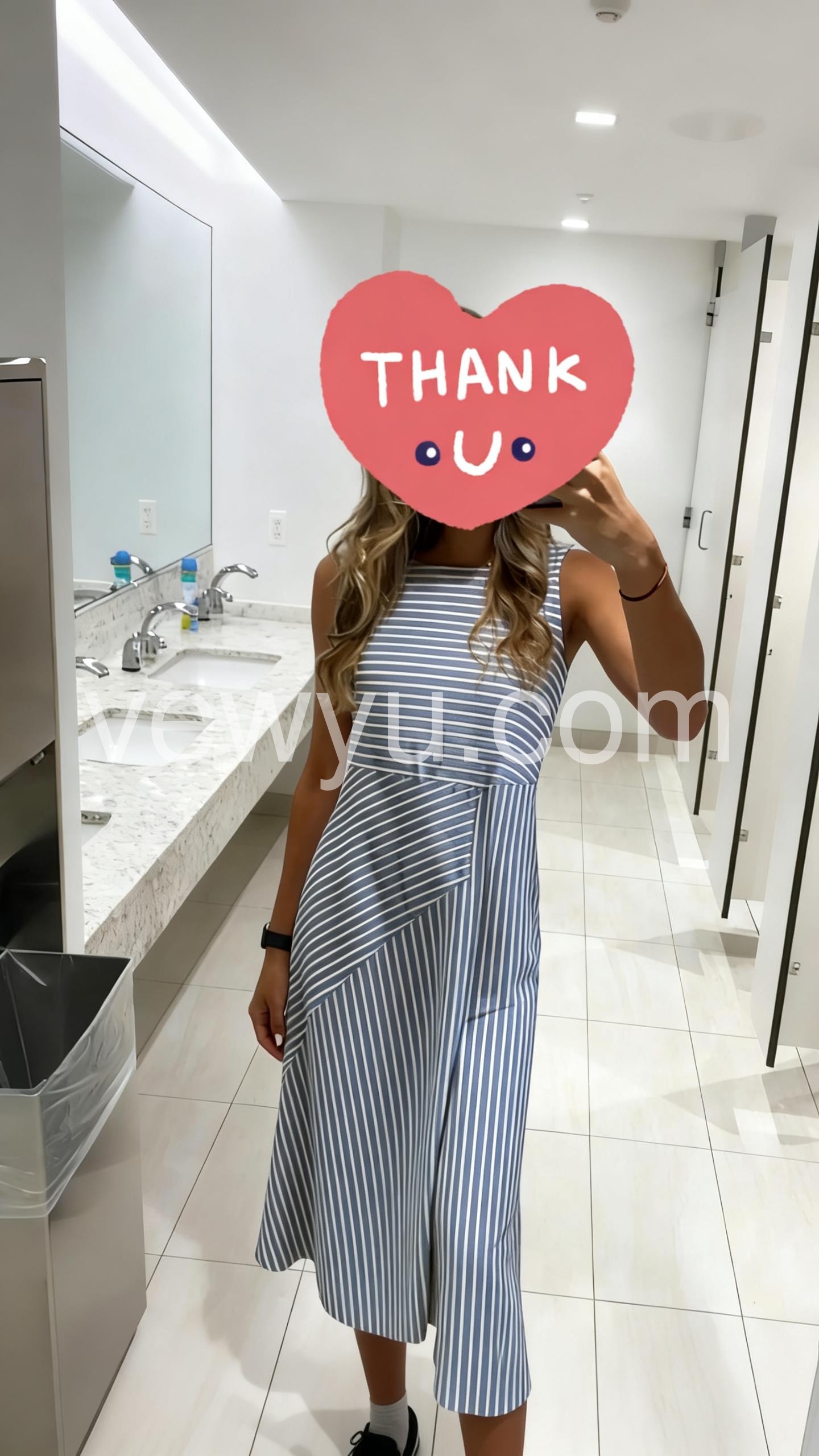 The A-line flow of the skirt hides my tummy perfectly. The sleeveless cut is very flattering on the arms. The unique stripe pattern is a huge plus.