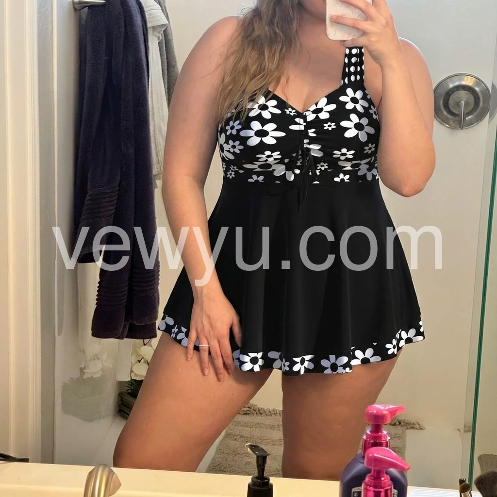 Loved it. Hides your belly while still looks cute. 5'3\" DD bust. It seemed to be well made and not too tight like some one piece bathing suits are.