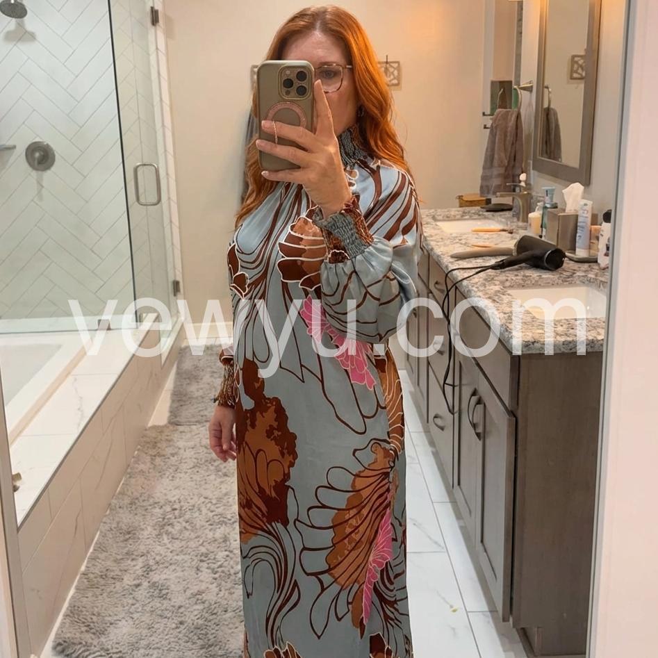 As a product expert, I present to you this Popular Long Sleeve Print Maxi Dress. Made of lightweight, breathable fabric, this dress is perfect for any occasion. With its elegant long sleeves and flattering print design, you'll feel confident and stylish all day long.