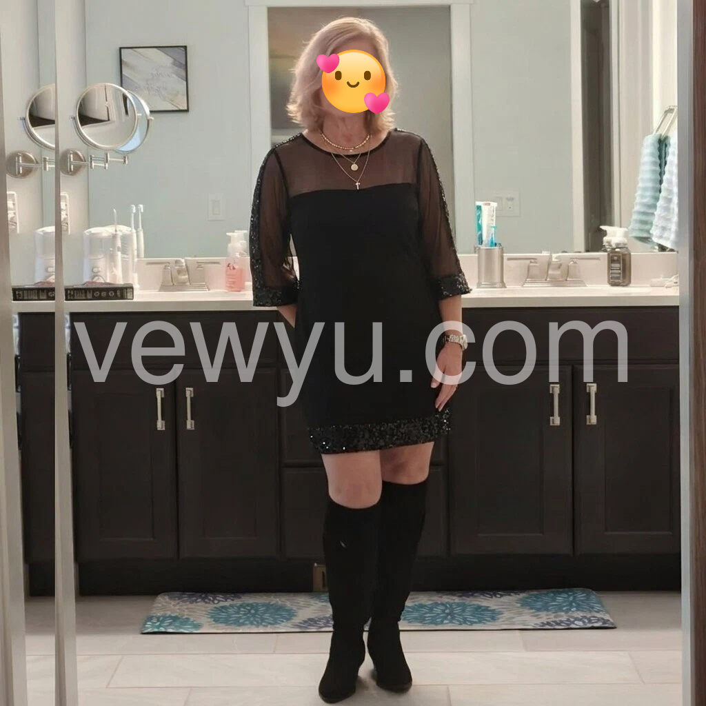 Elevate your evening look with this striking black mini dress, where sheer sleeves create an alluring contrast against the fitted silhouette. The sequined hem catches light with every movement, delivering sophisticated sparkle without overwhelming the design. Perfect for cocktail events or upscale nights out, this piece balances elegance with contemporary edge. The sheer sleeve detailing adds dimension while maintaining a refined aesthetic, making it versatile enough to transition from dinner to dancing.