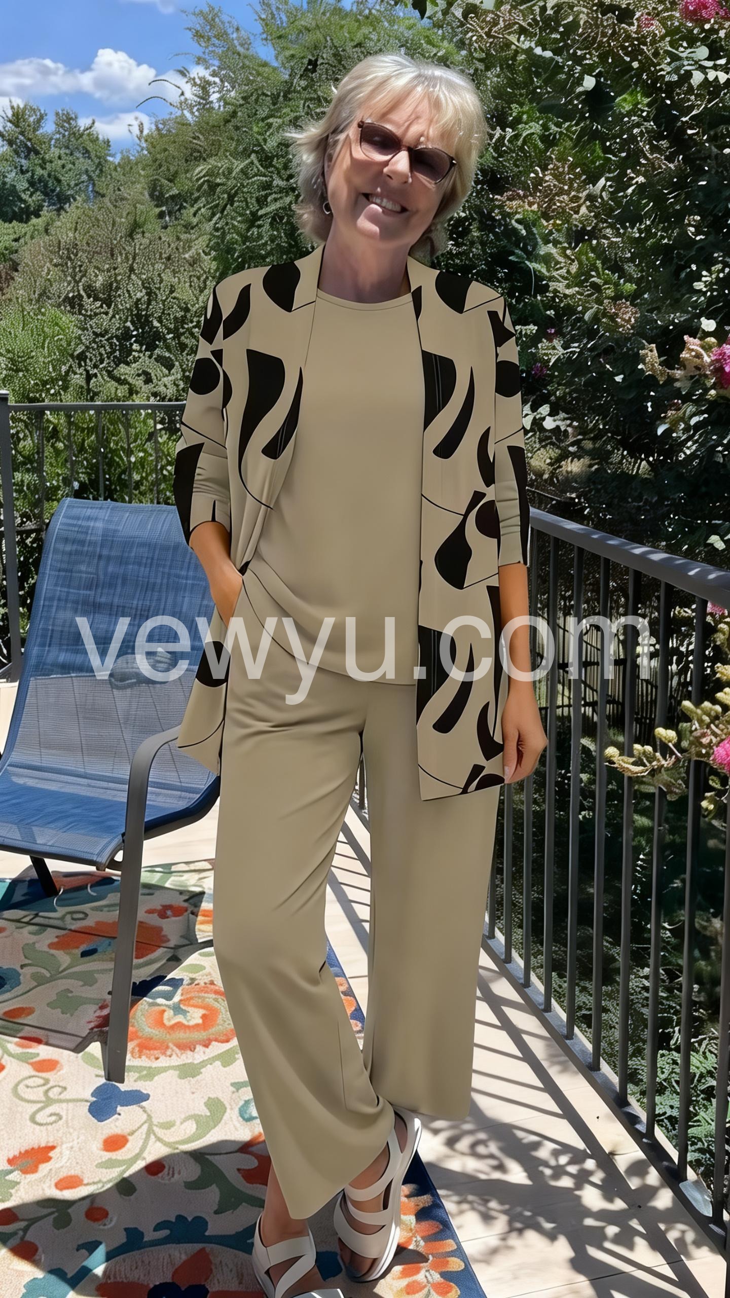 This coordinated set includes a round-neck top, relaxed wide-leg pants, and a matching open-front cardigan in soft brown tones. Made from comfortable, lightweight fabric ideal for everyday wear. The minimalist design offers effortless elegance. Perfect for casual outings or relaxed days at home. Stylish, versatile, and easy to layer.