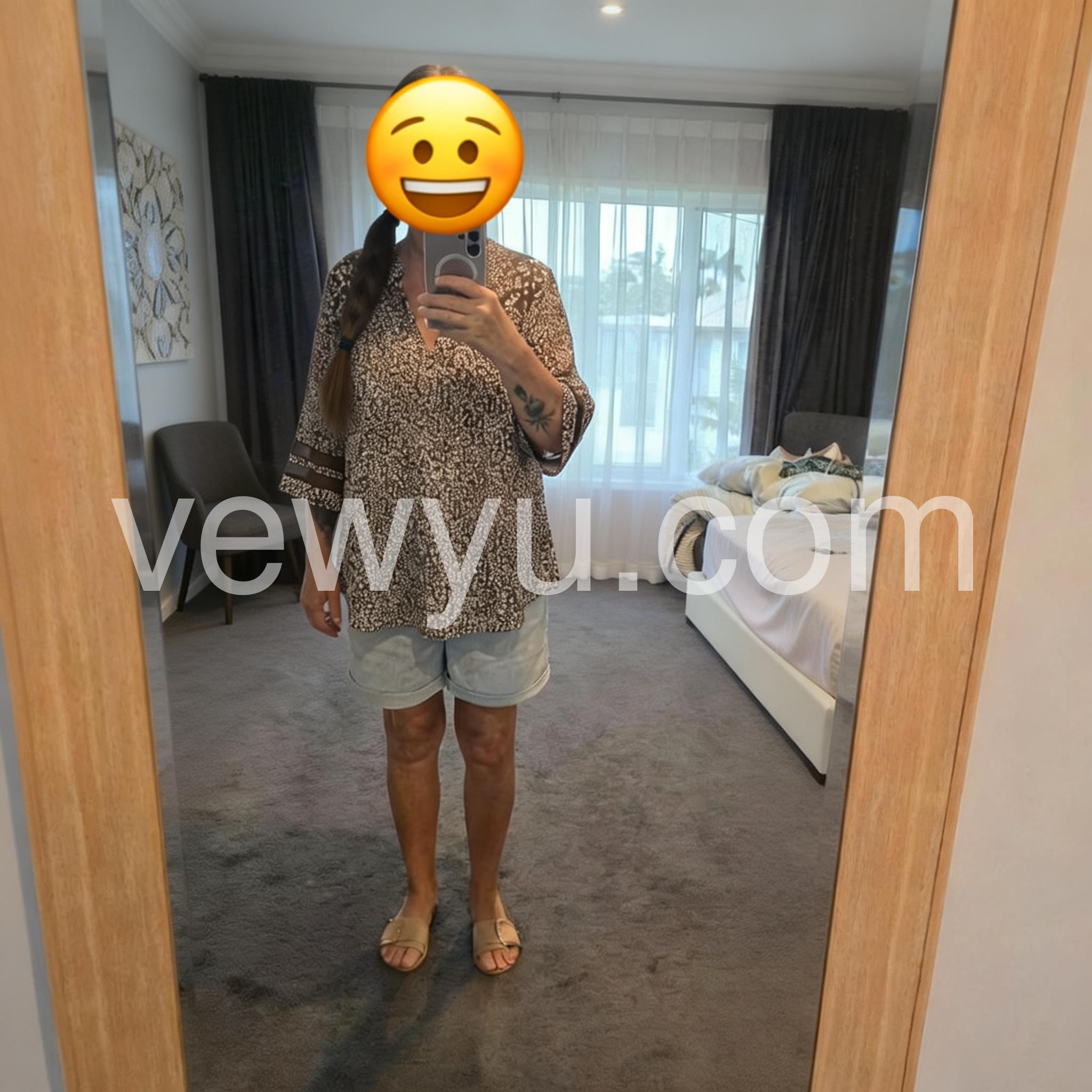This brown V-neck 3/4 sleeve top is a versatile addition to any wardrobe. Made from high-quality fabric, it offers both comfort and style. With its classic design and flattering neckline, it is perfect for any occasion. Elevate your look with this timeless piece.