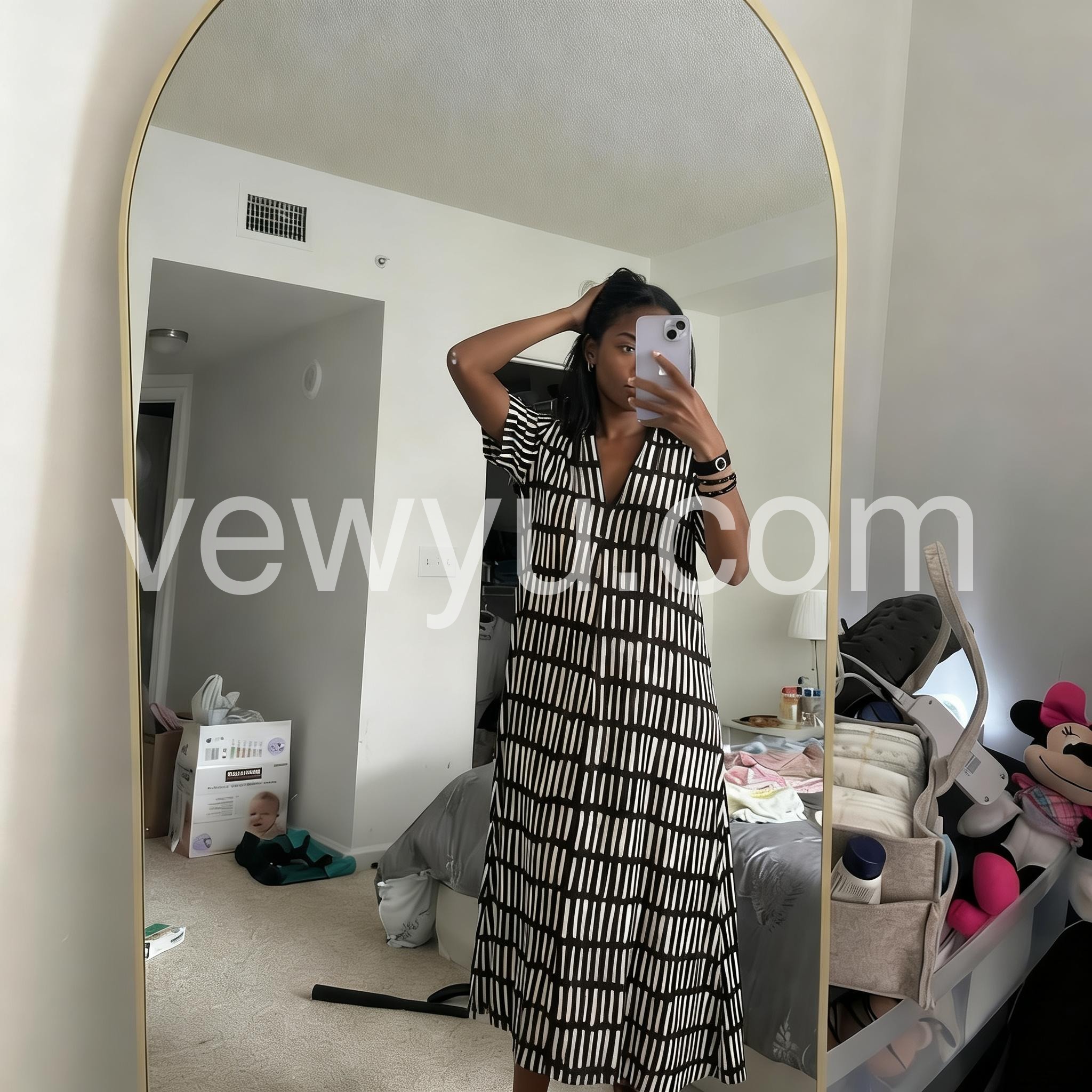 I’m absolutely in love with this dress! The black and white pattern is so stylish and flattering, and the fit feels comfortable and easy to move in. I wore it to a casual get-together and received so many compliments. The length is perfect elegant without being too formal.